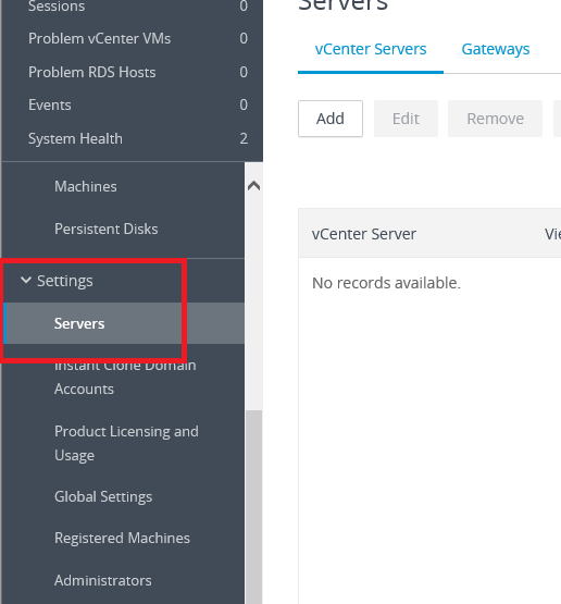 Now navigate to the "Connection Servers" tab and select your "Horizon Server" name from the list. After that, click on the "Edit" button.